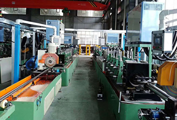 4. 切割系統(tǒng):它由切割設(shè)備、傳動(dòng)裝置、定位裝置等組成,可以將已經(jīng)焊接完成的管材按長(zhǎng)度要求進(jìn)行切割。